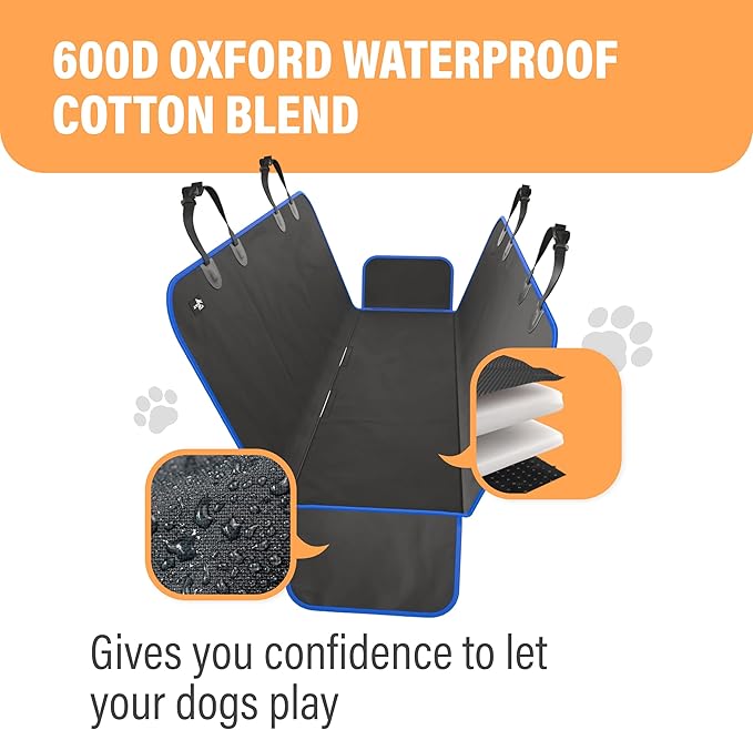 - FOUR-LAYER PROTECTION: Waterproof dog seat cover is made with durable 600D Oxford fabric, soft cotton, waterproof polyester, and non-slip PVC rubber bottom - designed to protect car seats from scratches and pet damage