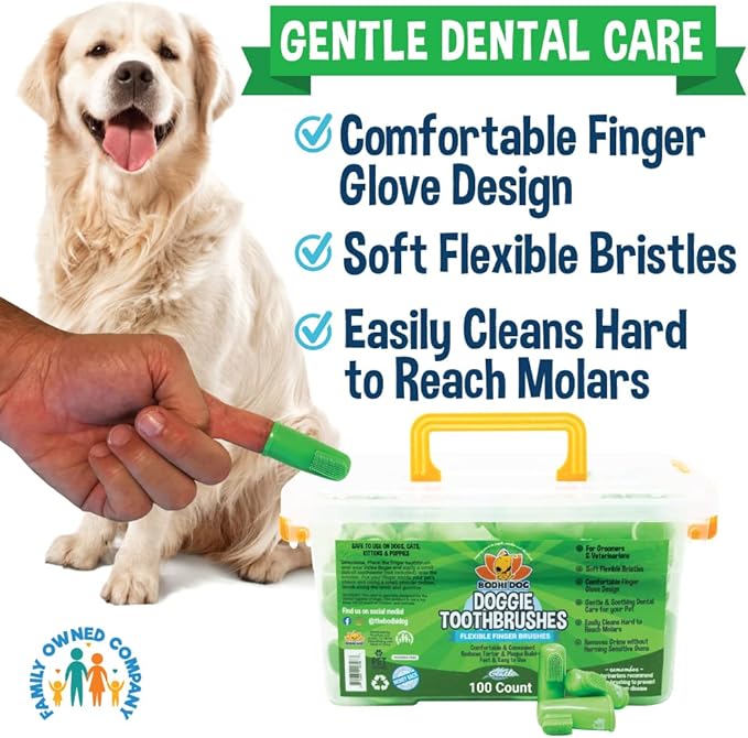 Bodhi Dog Finger Toothbrush for Dogs & Cats - Puppy Toothbrush with Soft Flexible Silicone Bristles, Gentle for Sensitive Gums, Promotes Healthy Teeth & Gums, Easy Teeth Cleaning Tool (100 Count)