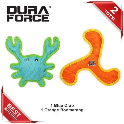 DURA FORCE - Durable Woven Fiber - Crab - Squeakers - Multiple Layers. Made Durable, Strong & Tough. Interactive Play Dog Toy (Tug, Toss & Fetch). Machine Washable & Floats (Combo Pack)