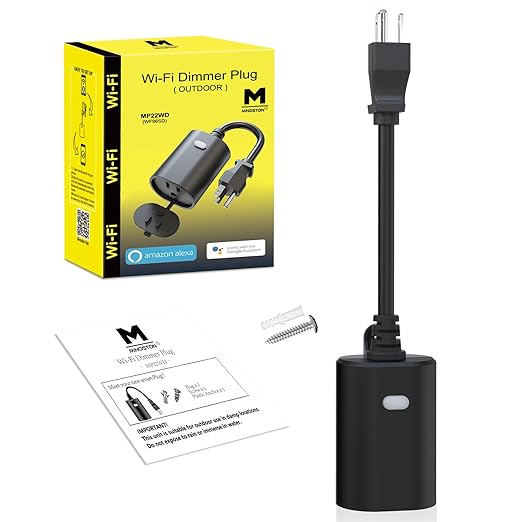 - [0-100% Dimming and Voice Control] This outdoor dimmer plug can easily adjust the brightness levels of the connected light from 0 to 100% to create the perfect ambiance for any activity or time of day. Use your smartphone or tablet to control your lights from anywhere with your 2.4ghz wifi. It is compatible with Alexa and Google Assistant, allowing for hands-free operation with voice commands