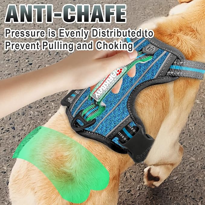 BARKBAY No Pull Dog Harness Large Reflective Dog Harness with Front Clip and Easy Control Handle for Walking Training Running with ID tag Pocket(Blue/Black,S)