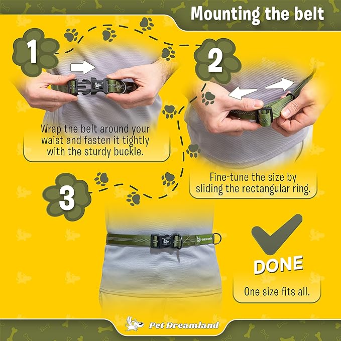 - Ergonomic and Stylish! The dog leash waist belt is adjustable and fits comfortably around your waist, making it easy to walk with style..