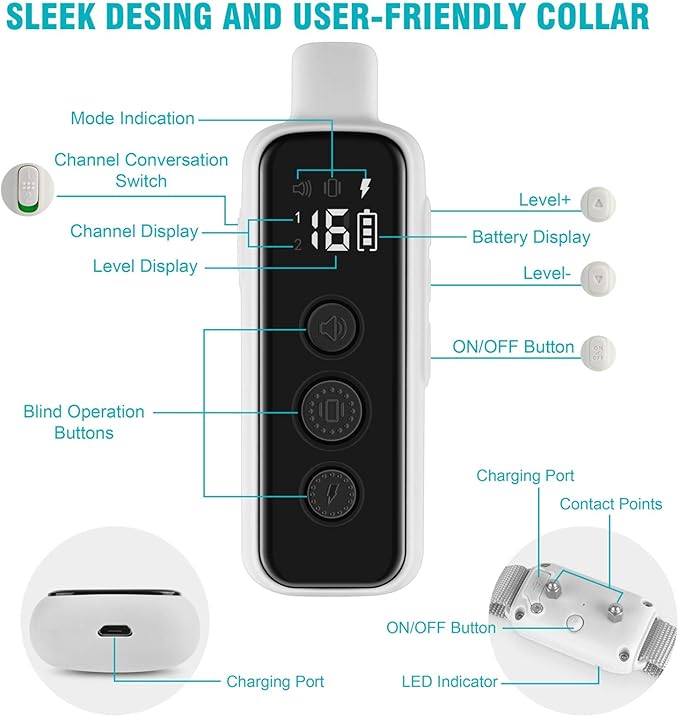 - Perfect for Training, Simple and Effective: Our electric shock collar is designed with 3 extremely effective harmless modes: beep(standard), vibration(standard), safe shock(adjustable 1-16 levels), which can help you train your dog to behave well