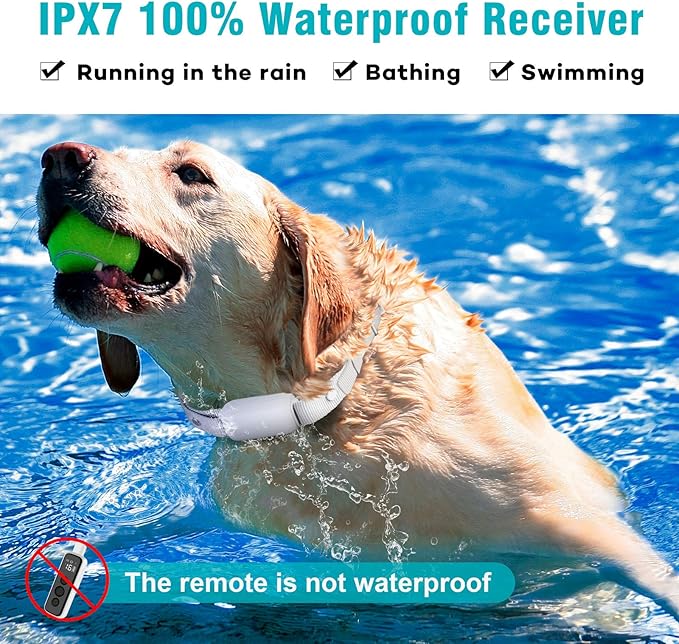 - Rechargeable and IPX7 Waterproof: Our electronic collar is rechargeable with a built-in lithium battery. You can charge the shock collar with your phone adapter, which is very convenient. The collar receiver is IPX7 waterproof, offering you maximum flexibility during the outdoor activities