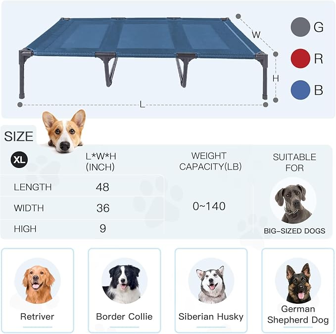 - [Joints Protection] Prevent your extra-large dog from experiencing arthritis pain with the SUDDUS raised dog bed - the perfect solution for your furry friend. Designed to distribute weight evenly, this outdoor elevated dog bed acts like a comfortable cot or hammock and keeps your pet cool in hot weather.