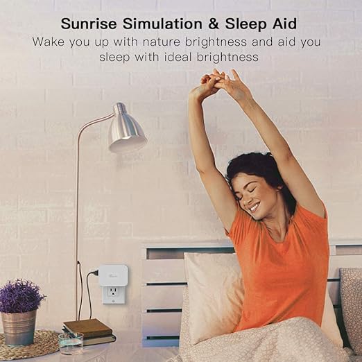 - Sunrise Simulation & Sleep Aid: With the sunrise and sunset simulation function, you can set the fade in/out time and lighting brightness. The light will gradually dim or light up, to help you fall asleep or wake up. Once it reaches the time you set, the wake-up or sleep aid function will automatically be ON/OFF. More user-friendly for your different daily needs