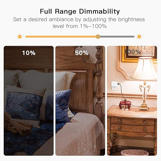 - Vacation Mode & No Hub Required: Set the dimmer to plug via APP to turn your devices ON/OFF randomly to create the illusion that you’re at home even when you’re away, to deter intruders, avoid property loss and save costs on electricity. The smart plug-in dimmer does not need to be connected to a cumbersome hub