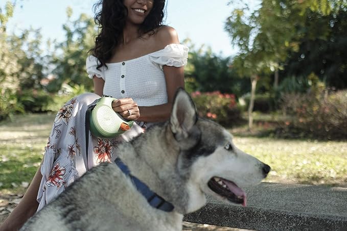 TUG Oval 360° Tangle-Free Retractable Dog Leash with Integrated Waste Bag Dispenser (Small, Green)