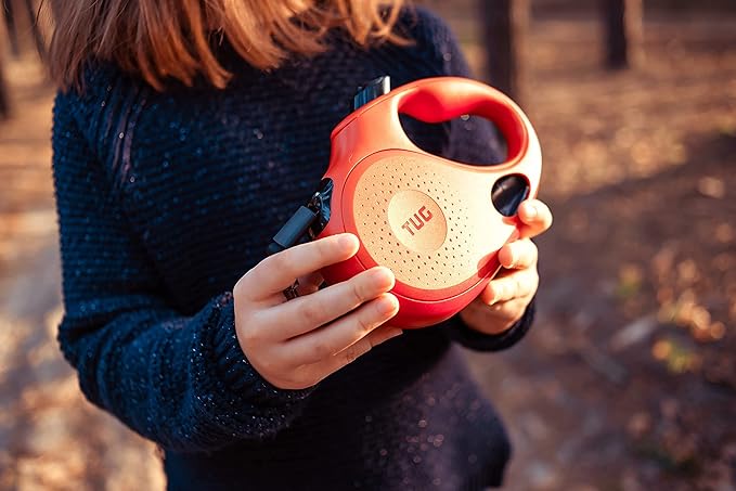 TUG Oval 360° Tangle-Free Retractable Dog Leash with Integrated Waste Bag Dispenser (Large, Red)