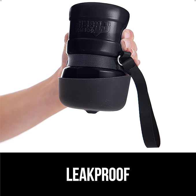 - LEAKPROOF DESIGN: pet water bottle is designed with an easy twist lock mechanism located at the bottom of the silicone bowl; twist the lock to create an air tight seal that helps prevent water from leaking out of the bottle