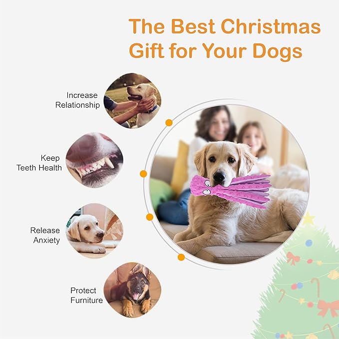 Dog Squeaky Toys Octopus - No Stuffing Crinkle Plush Dog Toys for Puppy Teething, Durable Interactive Dog Chew Toys for Small, Medium and Large Dogs Training and Reduce Boredom, 2 Pack