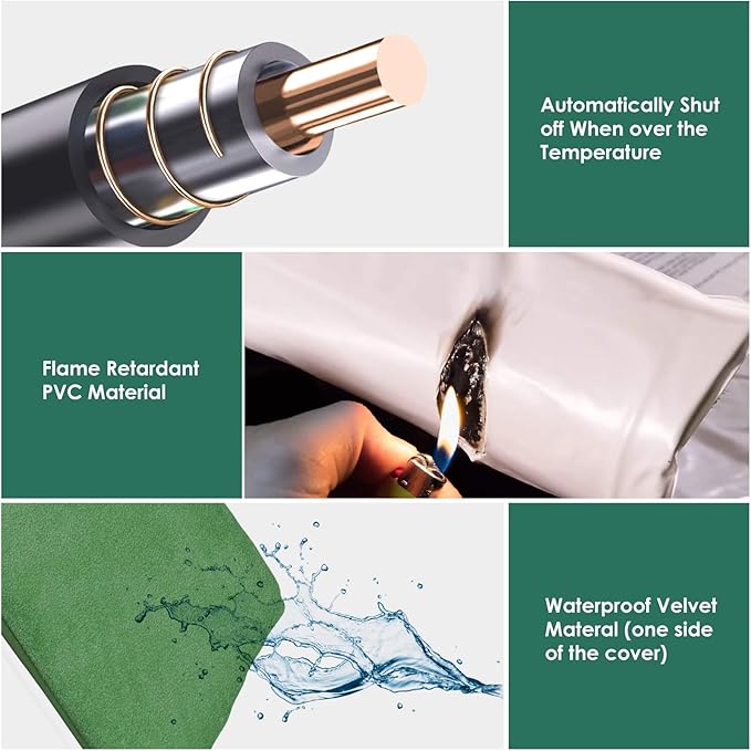 - 🐾ENERGY SAVING & SAFE 🐾 This outdoor heating pad is only 80w, thus it is more energy-savings. Anti-bite power cord design, the extra-long cord extends 5.91 feet with a 4.92 feet steel-encased chew guard. Furthermore, made of fireproof material, so it is really safe for you and your pets.