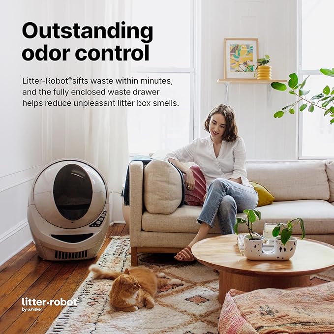 Litter-Robot 3 Connect by Whisker, Beige - Automatic, Self-Cleaning Cat Litter Box, Helps Reduce Litter Box Odors, Works with Almost Any Clumping Litter, WhiskerCare 1-Year Warranty