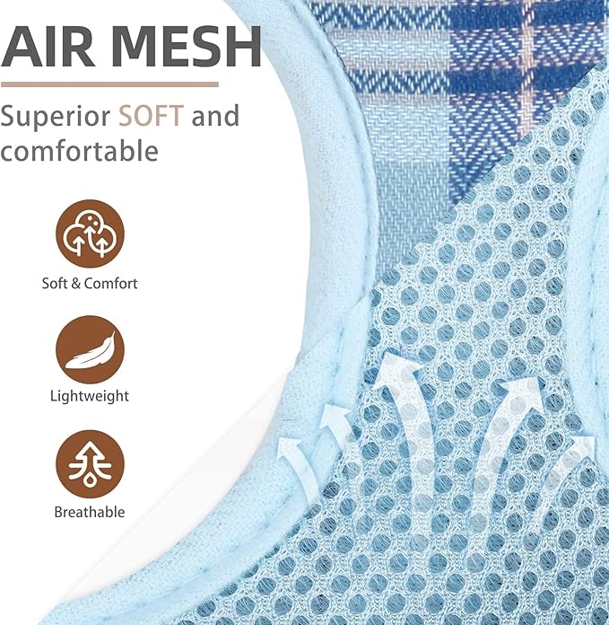 - [REFLECTIVE, PLAID PATTERN] - This Harness has two sides of reflective straps, and the middle logo also is reflective, so if you walk with your dog at night, then both of you will be safer! In addition, the classic plaid pattern is designed by our internal brand team, so it's very different from other normal harnesses. This plaid pattern looks both classic and stylish and is never out of date.