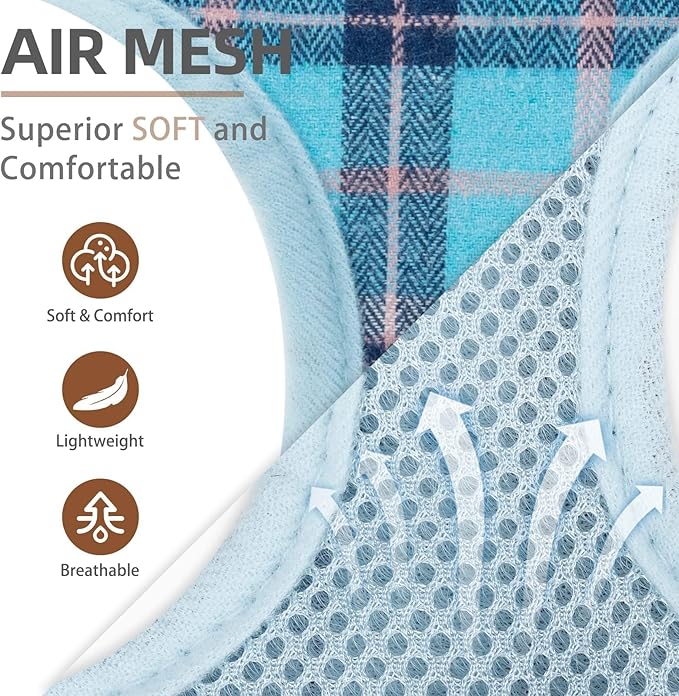 - DIFFERENT DESIGN: The harness is adopted with a plaid pattern which is designed by our internal brand team, so it's unique and very different from other normal harnesses. This plaid pattern looks both classic and stylish and is never out of date. It's great for everyday walking or going to a holiday party. It makes your furry friend look so lively and cute