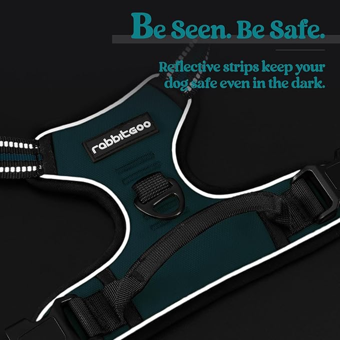 rabbitgoo Dog Harness No Pull with 2 Leash Clips, Adjustable Soft Padded, Reflective Oxford No Choke Pet Vest with Easy Control Handle for Large Dogs, Blue Coral, L