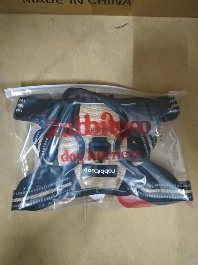 rabbitgoo Dog Harness No Pull with 2 Leash Clips, Adjustable Soft Padded, Reflective Oxford No Choke Pet Vest with Easy Control Handle for Large Dogs, Beige, L
