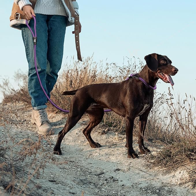 TwoEar Slip Leads for Dogs, 1/2" x 6FT Slip Leash for Large Dogs with Highly Reflective Threads, Comfortable Strong Rope Slip Leads, No Pull Pet Training Leash, Purple