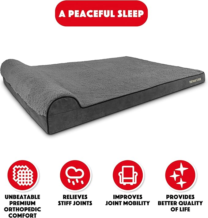 The Dog’s Bed Orthopedic Headrest Dog Bed XXXL Grey Plush 64x44, Memory Foam, Pain Relief for Arthritis, Hip & Elbow Dysplasia, Post Surgery, Lameness, Supportive, Waterproof Washable Cover