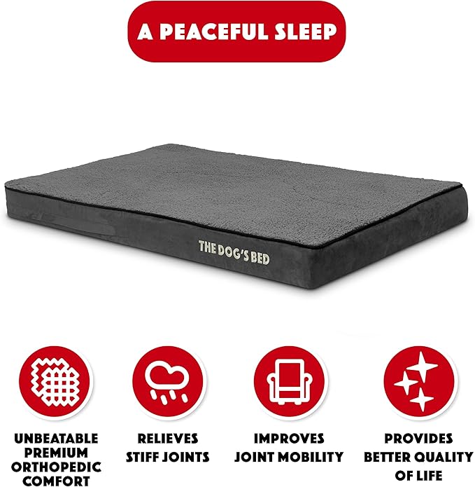 The Dog’s Bed Orthopedic Memory Foam Dog Bed, XL Grey Plush, Pain Relief for Arthritis, Hip & Elbow Dysplasia Post Surgery, Lameness, Supportive Calming, Waterproof Washable Cover, Veterinary Approved