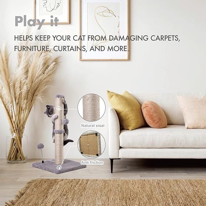 MECOOL Cat Scratching Post Premium Basics Kitten Scratcher Sisal Scratch Posts with Hanging Ball 22" for Kittens or Smaller Cats (22 inches for Kitten, Gray)