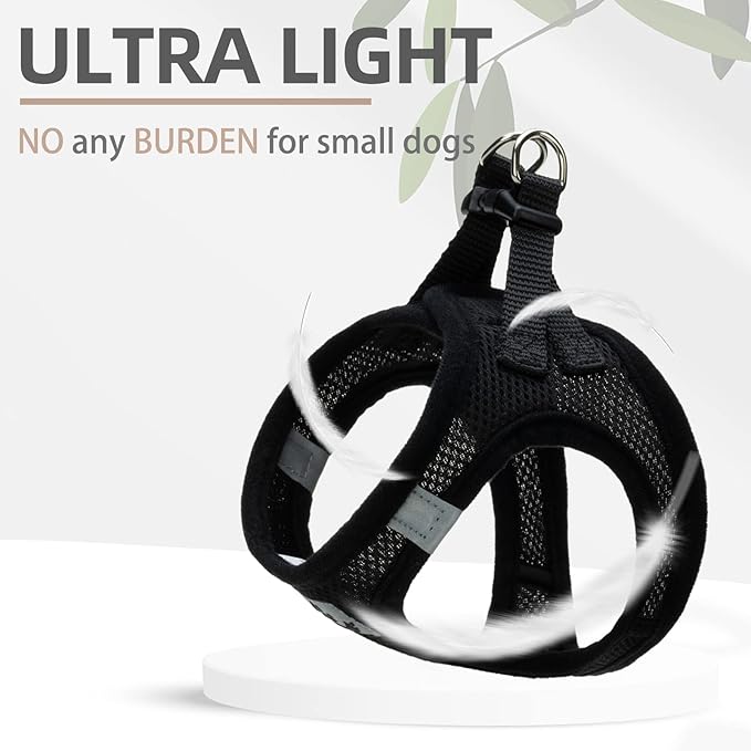 - [COMFORTABLE MATERIAL, DAILY WALKING, FOUR SEASONS WEARING] - The harness is made of durable polyester, and it's adopted with an air-mesh design. The whole harness is very soft, lightweight, and breathable. Even if your dog wears it all day, he won't feel any discomfort. For daily walking or running, it is a very easy thing to do. Besides, this is a four seasons harness, it keeps the dog cool on hot days and keeps the dog warm on cold days.
