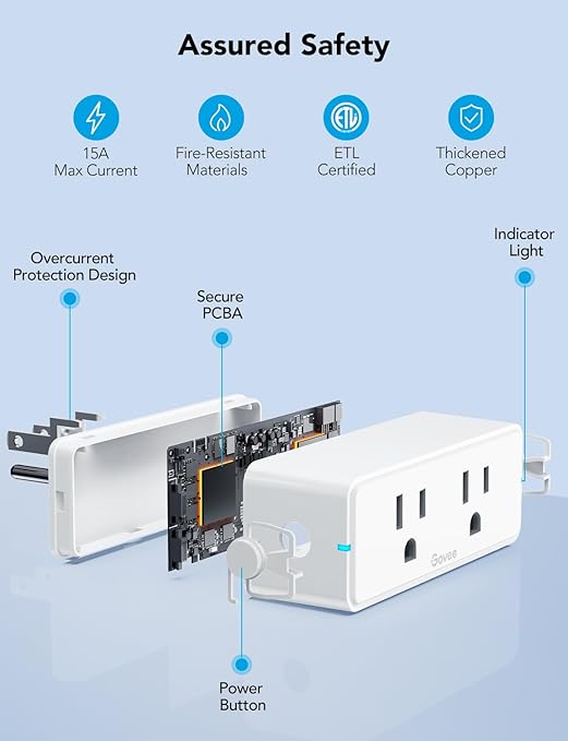 - Smart Voice Control: Compatible with Alexa and Google Assistant for hands-free on/off control of your plugged-in devices and appliances. Note: Users must create a new Govee Home App account or be logged in to use this Wi-Fi Plug.