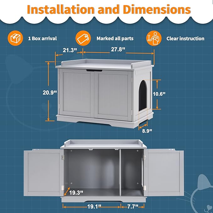 - Easy Assembly: All parts of the enclosed litter box cabinet are clearly marked, and the instructions are straightforward; Even beginners can assemble it in just 30 minutes with ease Number of box: 1