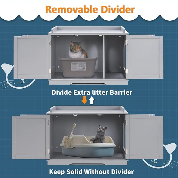 - Removable Divider: Dimensions: 27.8" x 21.3" x 20.9". The interior panel can be removed to create a larger space, accommodating a bigger covered cat litter box