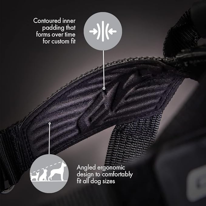 - ERGONOMIC DESIGN FOR ULTIMATE COMFORT – Angled, ergonomic design reduces chafing and allows a full range of motion, while contoured EVA padding molds to your dog’s shape over time for a custom fit.