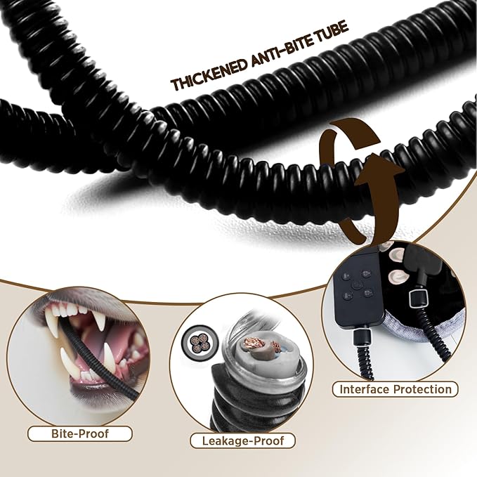 - 【WIRE PROTECTION】- Chew resistant steel cord is designed to prevent pets from chewing on the wire, no need to worry about electricity leakage
