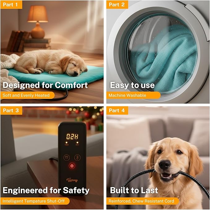 - ❤【Temperature Adjustable Function】Controlling the temperature of electric dog heating pad with the LED controller, it can adjust the temperature easily with 6 temperature settings ( 86-131℉/30-55℃) to accommodate your pets.