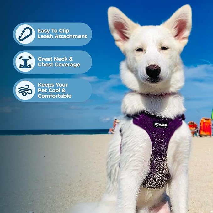 Best Pet Supplies Voyager Mesh Dog Breathable Harness Reflective Stitching, All Weather Adjustable for Walking Training, or Running - Heavy Duty & Durable, Harness (Purple), XL
