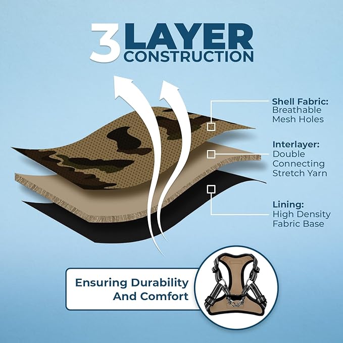 - REFLECTIVE WEBBING: 3M Scotchlite reflective material on the straps of this dog harness enhance your dog’s visibility during those early morning and late evening strolls.