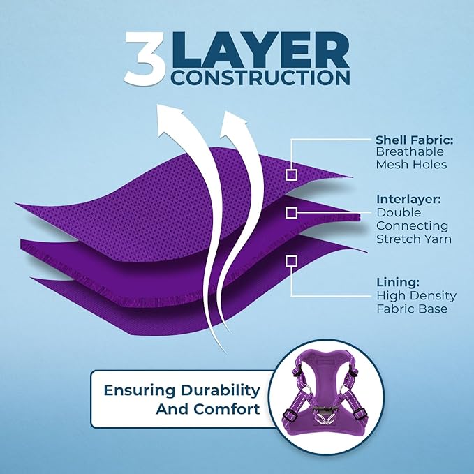 Best Pet Supplies Voyager Mesh Dog Breathable Harness Reflective Stitching, All Weather Adjustable for Walking Training, or Running - Heavy Duty & Durable, Harness (Purple), L