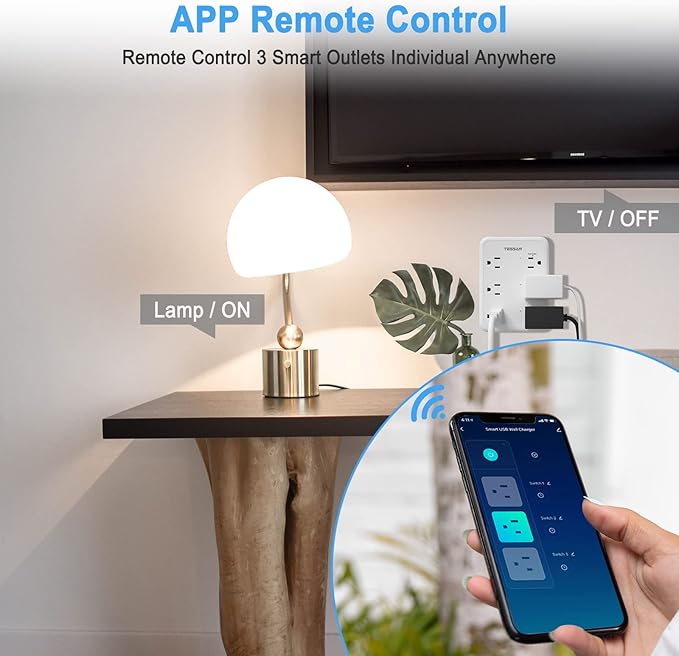 - Multi-Function Wall Outlet Extender: The Smart outlet extender includes 3 Smart Plugs and 3 Always-On Plugs, 3 USB Ports (NOT smart) on the top, which can power all your electrical devices, with wide space outlets design that without blocking; Multi plug design is suitable for bedroom, kitchen, office, and travel, etc