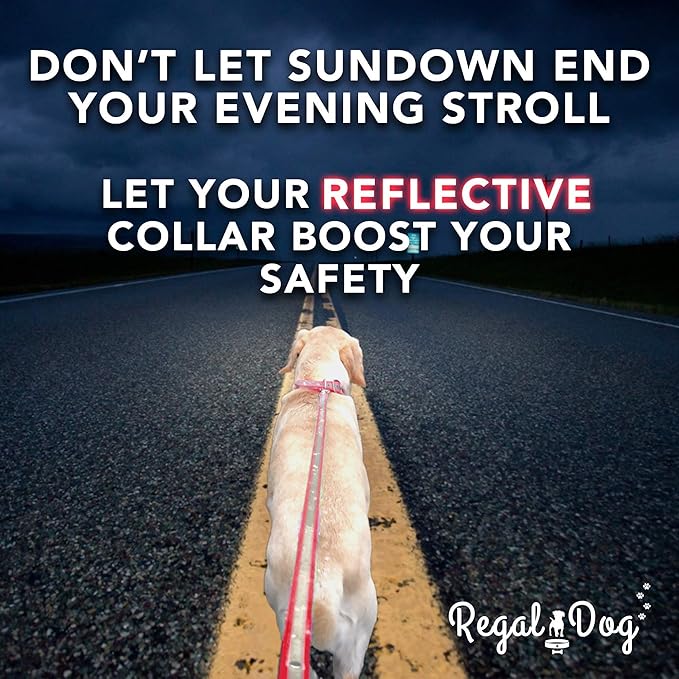 - SAFETY UNDER SUNDOWN - Walking your dog in the dark is dangerous. Fetch some safety for both you and your furry friend with the Black Reflective Dog Collar by Regal Dog Products! As cars pass, the highly reflective strip notifies drivers of your presence so they can safely steer clear. Keep your dog visible and out of harm's way wherever you may go day or night. With the customizable name plate, you can keep your furry friend safe and properly idenfied.