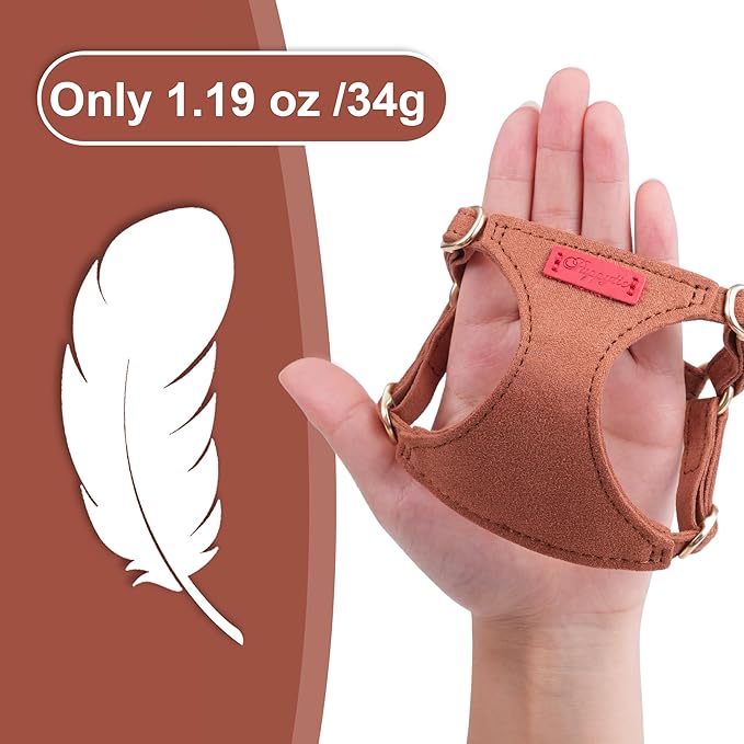 Puppytie No Pull XXS Puppy Harness with Multifunction Dog Leash,Soft Adjustable No Choke Escape Proof Pet Harness Vest,Brown Caramel,XXS