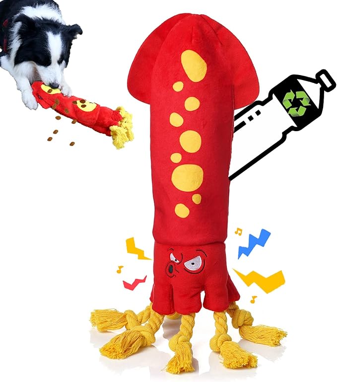 - Squeaky & Rope Toys: Squeaky head creates more sounds and fun, dogs can play tug with these soft & flexible rope tentacles. Bright colors for comfort and relaxation. Lilfrd octopus dog toy is great birthday, Christmas, Easter and holidays gifts for pups