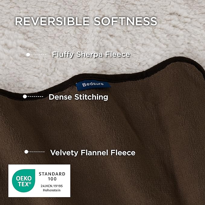 Bedsure Waterproof Dog Blankets for Extra Large Dogs - XL Cat Blanket Washable for Couch Protection, Sherpa Fleece Puppy Blanket, Soft Plush Reversible Throw Furniture Protector, 50x60, Coffee Brown