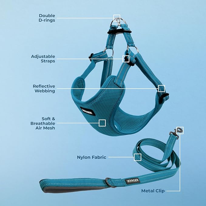 Best Pet Supplies Voyager Mesh Dog Breathable Harness Reflective Stitching, All Weather Adjustable for Walking Training, or Running - Heavy Duty & Durable, Harness Leash Set (Turquoise), XS
