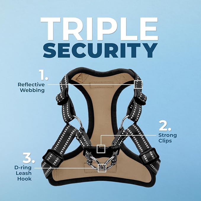 - REFLECTIVE WEBBING: 3M Scotchlite reflective material on the straps of this dog harness enhance your dog’s visibility during those early morning and late evening strolls.