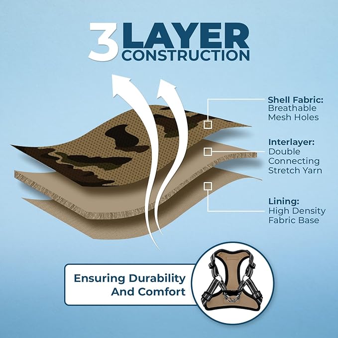- REFLECTIVE WEBBING: 3M Scotchlite reflective material on the straps of this dog harness enhance your dog’s visibility during those early morning and late evening strolls.