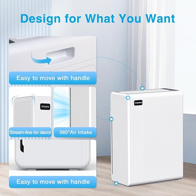 - POWERFUL & PORTABLE: With a high CADR index, this home air purifier covers an area of up to 2000ft², circulates air quickly by 6X air changes per hour in 350ft², 3X air changes per hour in 700ft², 2X air changes per hour in 1000ft². The unique size and contemporary design of E-300L air purifier perfectly fit large rooms, bedrooms, small rooms, offices, living rooms, nurseries, kitchens and basements. Compact enough for easy movement with a handheld design in the back.