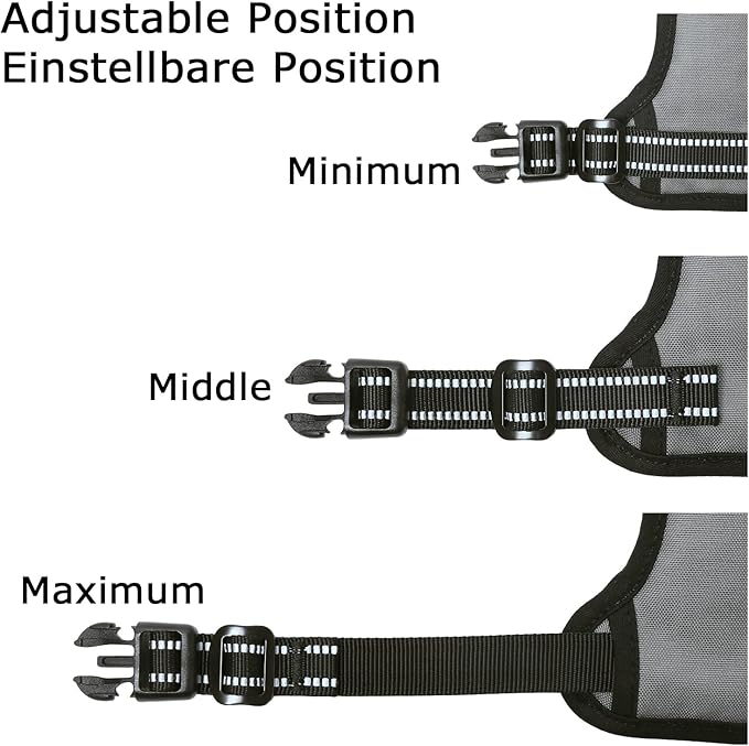 - Easy to Adjust - With 4 easy adjustable strong straps around the body. You can use 2 neck straps and 2 chest straps to offer an ideal fit with extra growth room. No worry about slipping out or choking.