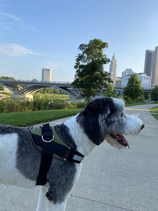ShawnCo Essential Dog Harness, No-Pull Pet Vest with 3 Leash Clips, No Choke, Reflective, Adjustable and Padded, for Easy Walking and Training for Small, Medium and Large Dogs (Olive Green, M)