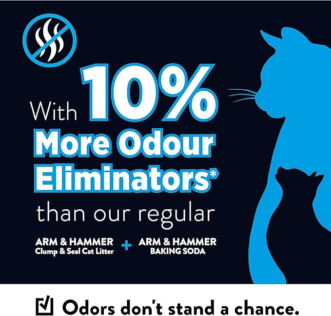 - 14-DAY ODOR CONTROL this cat litter deodorizes with powerful moisture-activated odor eliminators plus ARM & HAMMER Baking Soda which eliminates both liquid and solid waste odors on contact. It’s guaranteed to keep odor controlled for 14 days