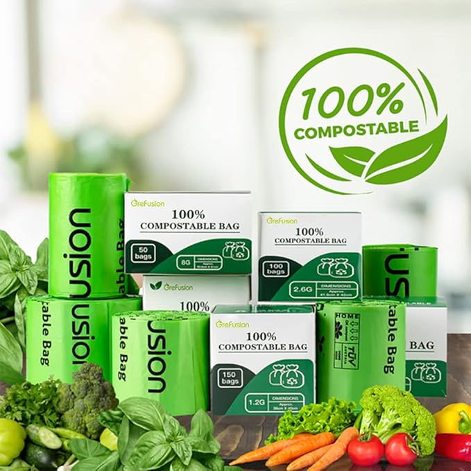 GreFusion Compostable Trash Bags for Kitchen Compost Bin 1.2 Gallon,150 Count,Compost Bags Small for Food Scrap Waste Bags for Countertop Bin Certified by BPI,ASTM D6400 and OK Compost