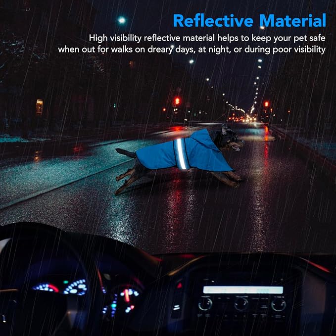 - SAFETY PET RAIN COAT - Design with reflective belly strip, your dogs is visible under car light, flashlight, street light shots. So don’t worry about your puppy’s safety when they are out for a walk.