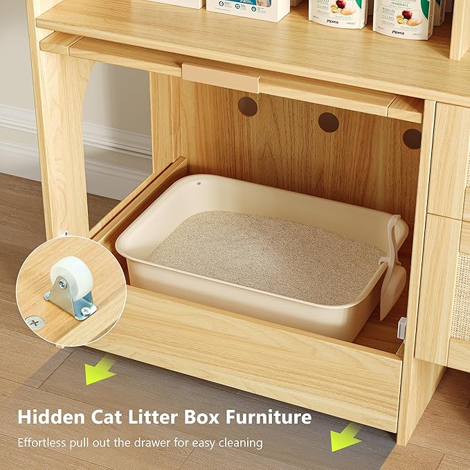 - Easier Cat Care: This cat litter box cabinet features a smooth, fully removable drawer that holds the litter box, making cleaning hassle-free. It provides a hidden space that keeps litter and spills out of sight, and can be used in any room as storage furniture. This is a perfect solution for maintaining a clean home and hiding the cat litterbox